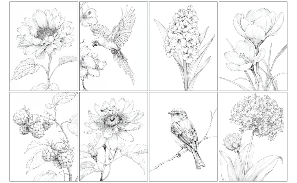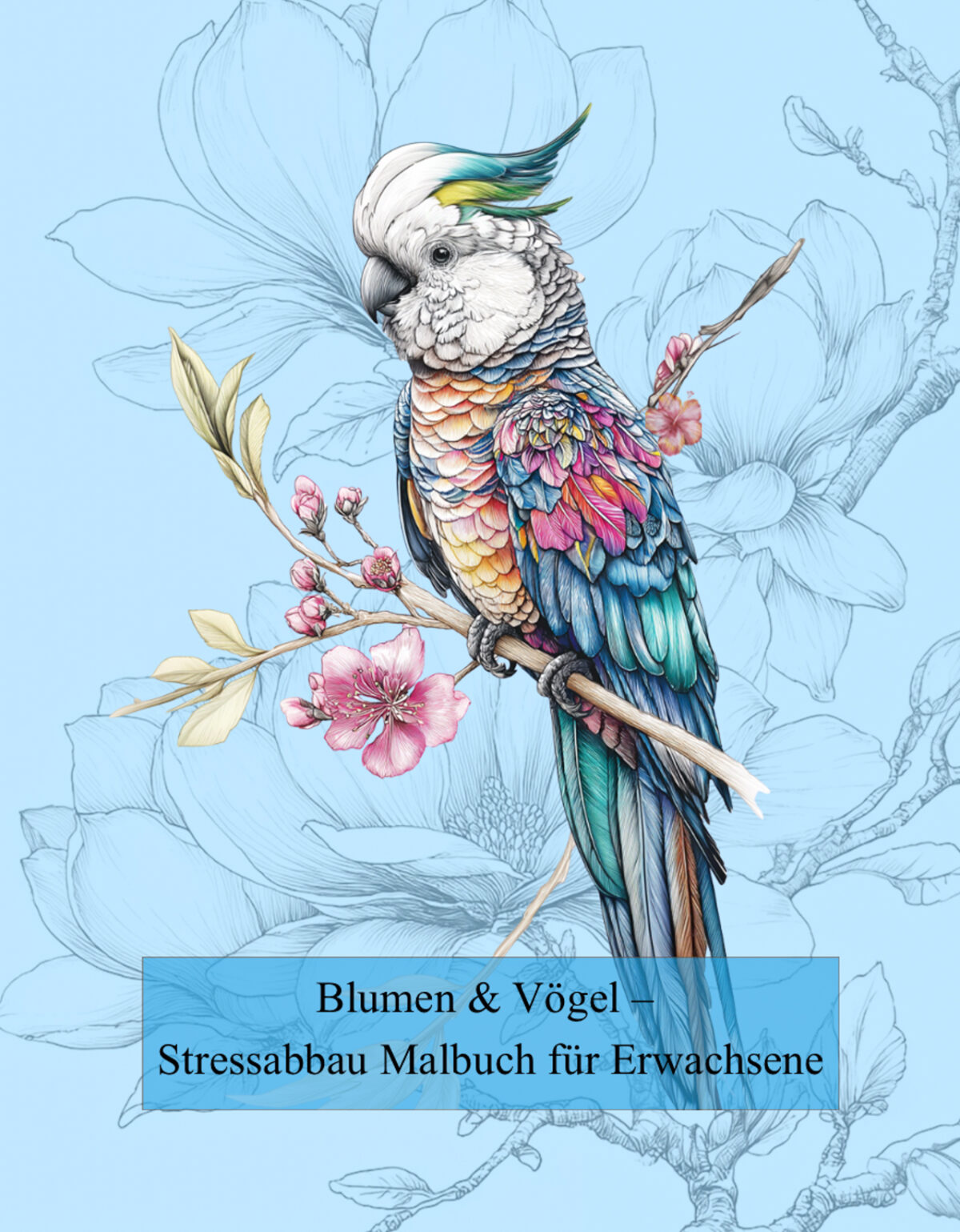 Blumen & Vögel – Stressabbau Malbuch für Erwachsene