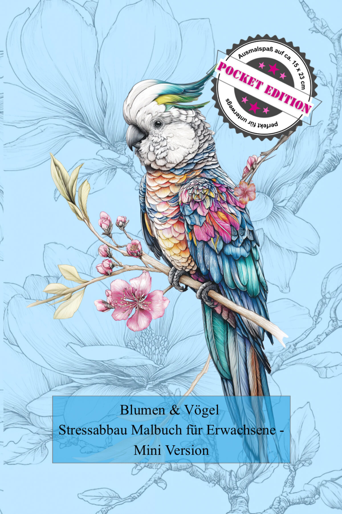 Blumen & Vögel – Stressabbau Malbuch für Erwachsene – Mini Version